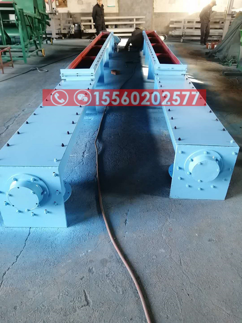 LS320-8米螺旋輸送機客戶輸送的物料是灰粉。輸送機量是8小時3噸。電機功率7.5KW。配套減速機型號是ZQ300-17.5。輸送機的葉片厚度是4MM。箱體厚度也是4MM。輸送機的生產都是按按照客戶的要求生產的。輸送機定做好以后是田經理親自來廠里驗貨了。客戶對我們生產的輸送特別的滿意。