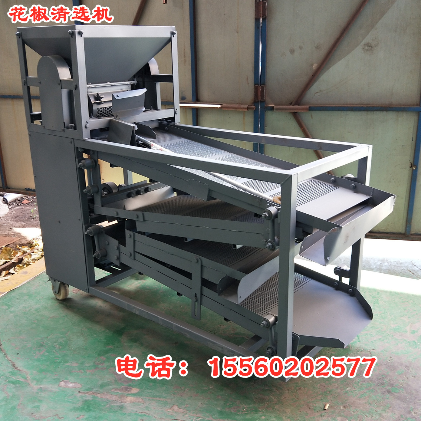 花椒篩選機是一臺可以快速的把花椒枝--葉--殼--籽分離開的機器。功能的椒選機。不管是紅花椒篩分,還是青花椒篩分都可以用我們的花椒篩選機。花椒篩選機有8層篩網。烘干后的花椒只需要在篩選機粒過一遍就可以了。一臺花椒篩選機的產量是好幾個人工的篩分效率。花椒篩選機產量大,篩分凈度也高。另外花椒篩選機工作起來是沒有噪音的。