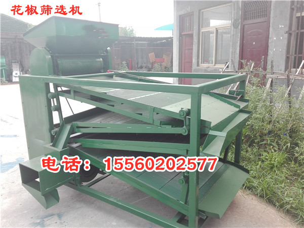 使用該機器可以把花椒中的籽、桿、葉、塵土等雜質分別清選出來,同時分出花椒顆粒等級,取代繁重的人工清選勞動?;ń非暹x機是專用于花椒脫粒、清選、分級、去雜的機械。 花椒篩選機及其他配套設備(提升機、皮帶機、絞龍、螺旋輸送機等)用途和特點:本機下方設有風機,可將從篩面流下的椒籽和花椒進一步風選分離,使篩凈率大大提高。