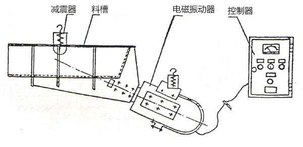 電磁振動給料機的激振器電磁線圈的電流是經(jīng)過單相半波整流的,當線圈接通后在正半周內(nèi)有電流通過,銜鐵和鐵芯之間便產(chǎn)生了脈沖電磁力互相吸引,這時槽體向后運動,激振器的主彈簧發(fā)生變形儲存了一定的勢能,在負半周線圈中無電流通過,電磁力消失,主彈簧釋放能量,使銜鐵和鐵芯朝反方向離槽體向前運動。于是電磁振動給料機以交流電源的頻率往復振動,由于槽體的底平面與激振力作用線有一定的夾角,因此槽體的物料沿拋物線的軌跡連續(xù)不斷地向前運動。調(diào)整整流電壓的高低,即可控制設備的送料量。