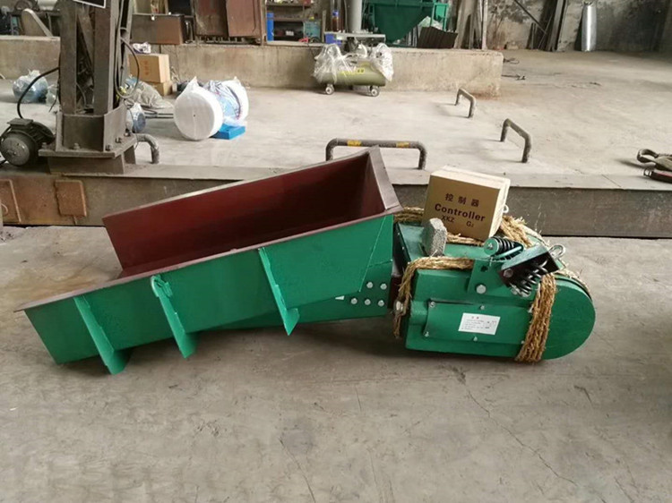 電磁振動給料機是一個較為完整的雙質點定向強迫振動的彈性系統, 整個系統工作在低臨界共振狀態,主要利用電磁激振器驅動槽體以一定的傾角做往復振動,使物料沿槽移動。在交流電的正半周,脈動電流流過線圈,在鐵芯和銜鐵之間產生一脈動電磁吸力,使槽體向后運動,激振器的主彈簧發生變形,儲存勢能;在負半周期內,線圈中無電流通過,電磁力消失,銜鐵在彈簧力的作用下與電磁鐵分開,使料槽向前運動,這樣料槽就以交流電源的頻率,連續地進行往復振動。